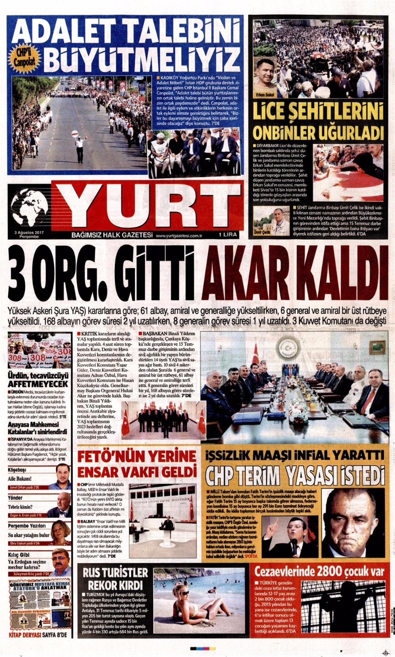 Gazetelerde Bugün | 03 Ağustos Perşembe