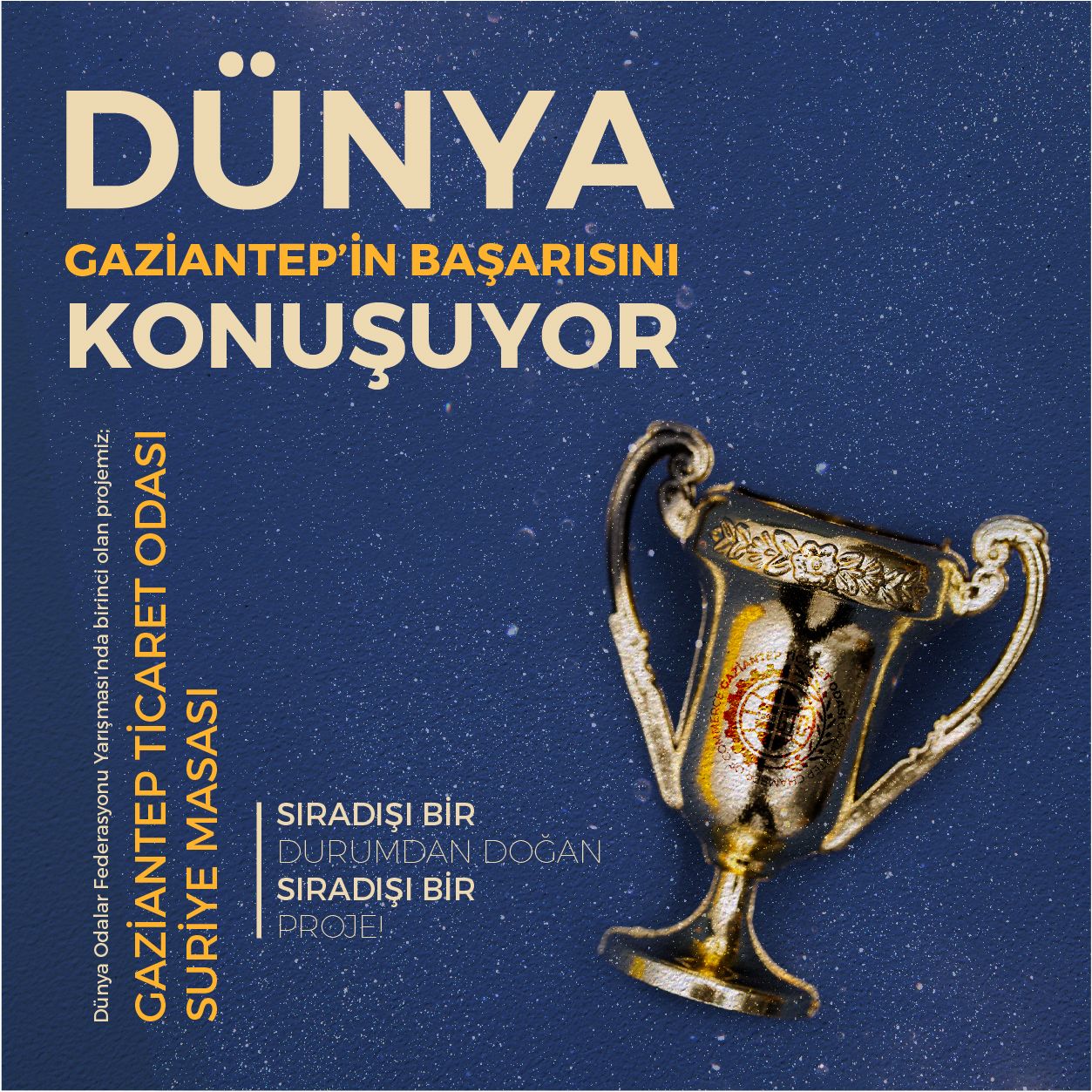 Gaziantep Ticaret Odası (GTO), büyük bir başarı elde ederek Brezilya-Rio’da düzenlenen Dünya Odalar Yarışmasında “Suriye Masası” projesi ile dünya birincisi oldu.