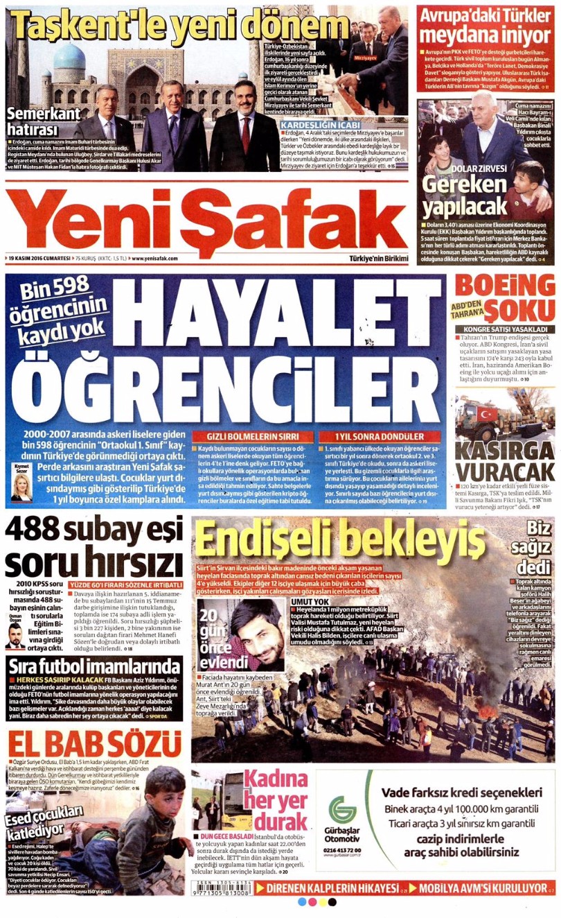 Gazetelerde Bugün | 19 Kasım Cumartesi