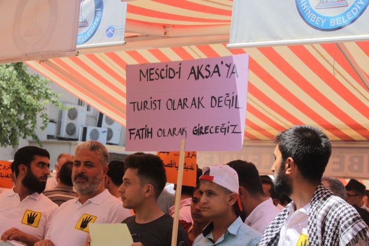 Cuma Namazı sonrası Ulu Cami avlusunda toplanan sivil toplum kuruluşlarından oluşan kalabalık, İsrail'in Mesci-i Aksa'yı ibadete kapatmasına tepki gösterdi. Ellerinde, 'Mescid-i Aksa'ya turist olarak değil, Fatih olarak gireceğiz', 'Yeryüzü kandan sel olsa özgür olacak Mescid-i Aksa' gibi Türkçe ve Arapça dövizler taşıyan grup, İsrail aleyhine sloganlar attı. Grup adına basın açıklaması yapan İHH İnsani Yardım Derneği Gaziantep İl Başkanı Engin Erbakan, Mescid-i Aksa'nın İsrail tarafından ibatede kapatılmasının kabul edilemez olduğunu belirterek, şunları söyledi: