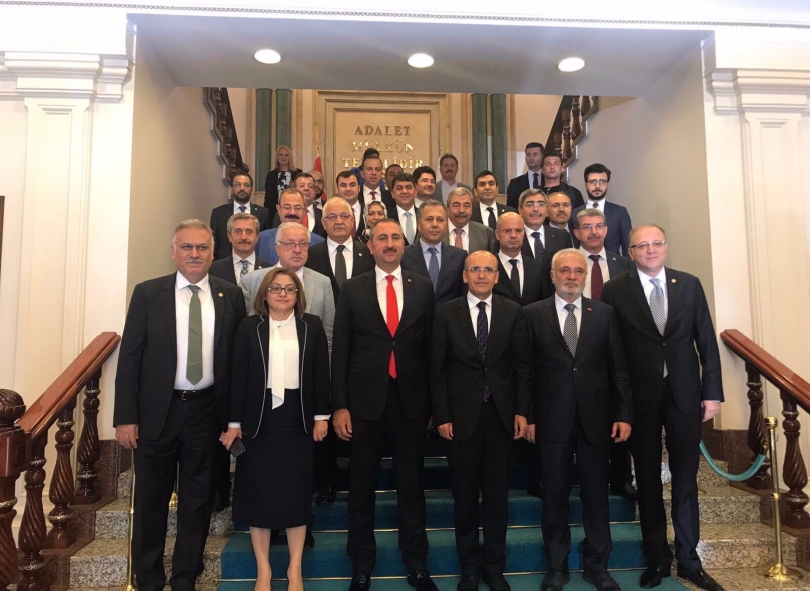 Başbakan Yardımcılığı görevine devam eden Mehmet Şimşek ve Adalet Bakanılığı görevine getirilen Abdulhamit Gül’e hayırlı olsun dileklerini ileten heyet çalışmalarında başarılar diledi.