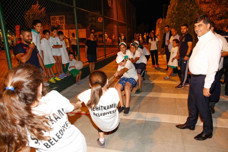 Şehitkamil’de parklar sporcu öğrencileri misafir etmeye devam ediyor. Her hafta ilçe genelinde farklı mahallelerde yer alan parklarda gerçekleştirilen etkinliklerde görevli eğitmenler unutulmaya yüz tutan geleneksel oyunları katılımcı öğrencilere önce anlatıyor sonra keyifle oynatıyorlar. Basketbol, mini voleybol, badminton branşlarında gerçekleştirilen müsabakalar, minyatür kaleye penaltı atma, top sürme yarışları ve beceri koordinasyon parkurlarının yanı sıra geçmiş yıllarda sokak aralarında sıkça oynan çuval yarışı, ip atlama, yumurta taşıma yarışı, halat çekme, yağ satarım bal satarım, mendil kapmaca, yakan top, istop, körebe gibi oyunlar etkinlik esnasında küçük ve genç yaştaki öğrenciler ile parklarda kendilerini yalnız bırakmayan velilerinden büyük ilgi görüyor.