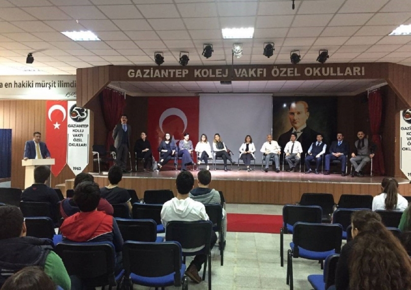 Gaziantep Kolej Vakfı Özel Okullarında TEOG öncesi gerçekleştirilen seminerin ikinci bölümünde, okulun branş öğretmenleri sınav hazırlık döneminin başarılı geçtiğini ve öğrencilere sınav öncesi dikkat edilecek hususlarda önerilerde bulundu. Seminerde GKV Rehberlik servisi öğretmenlerinden Orhan Kemal Tellal, öğrencilere sınavda karşılaşabilecekleri sorunlarla ilgili uyarılarda bulunarak bu sorunların çözümüne yönelik önemli önerilerde bulundu. Seminerin interaktif bir şekilde gelişen son bölümünde, öğretmen ve öğrenciler birlikte “Başaracağız” sloganı atarak seminere farklı bir sinerji kattı.