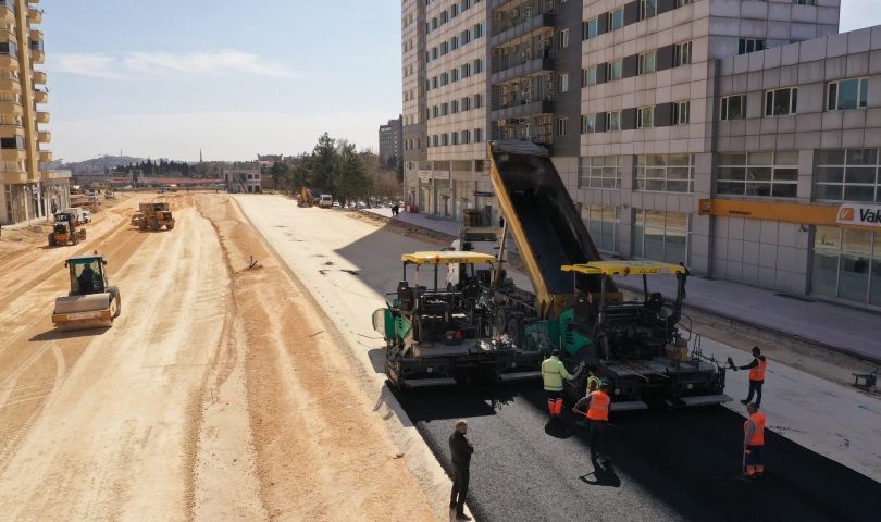 Gaziantep Büyükşehir Belediyesi tarafından ‘Hastaneler Bölgesi’nin ulaşımının rahatlamasına yönelik GAZİRAY Projesi kapsamında yer altına alınan beş bin metrelik hattın üzerine açılacak yol için sıcak asfalt dökümü başladı.