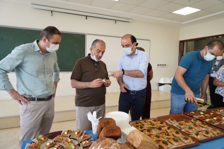 Gastronomi ve Mutfak Sanatları Bölümü’nde yapılan etkinlikte, farklı içeriklere sahip atıştırmalıklar, HKÜ Rektörü Prof. Dr. Türkay Dereli, HKÜ Rektör Yardımcısı Prof. Dr. Mehmet Lütfi Yola, Güzel Sanatlar Fakültesi Dekanı Prof. Dr. Emine Görün Arun ile Güzel Sanatlar ve Mimarlık Fakültesi bünyesindeki akademisyenlere ikram edildi.