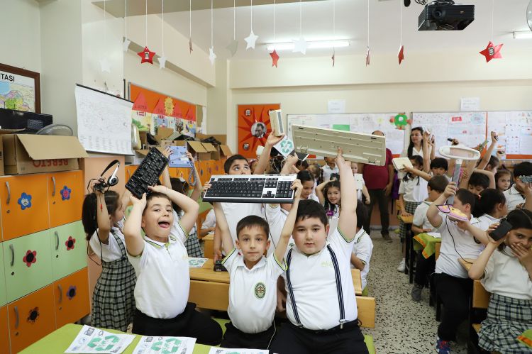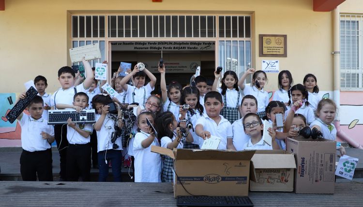 Öğrenciler topladıkları elektronik atıkları belediyeye teslim ettiler.