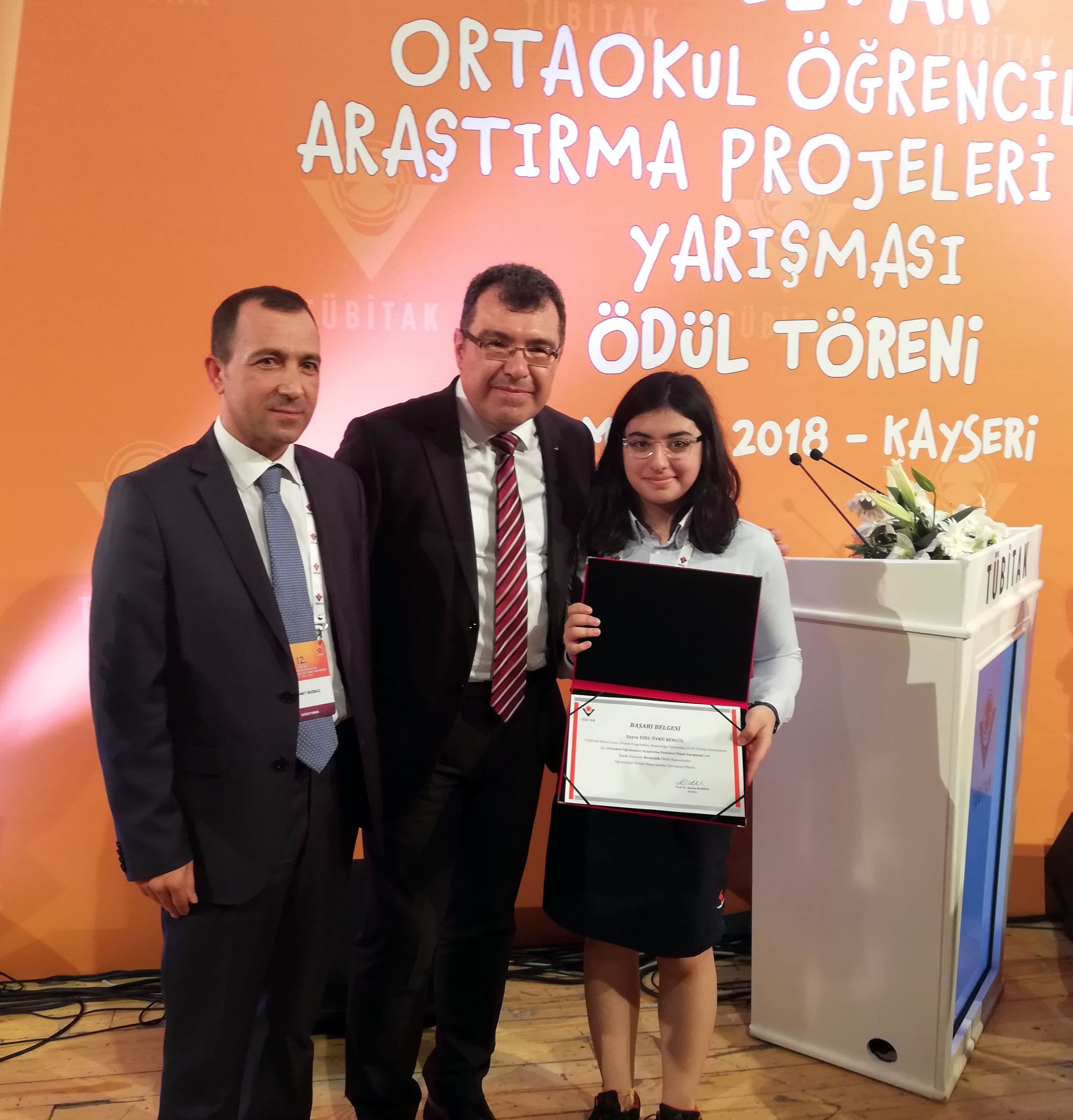 Kayseri Dünya Ticaret Merkezinde düzenlenen “12’nci Ortaokul Öğrencileri Araştırma Projeleri Yarışması”na Türkiye’den 11,352 proje arasından finale kalan 160 proje davet edilerek sergilenmeye layık görüldü.