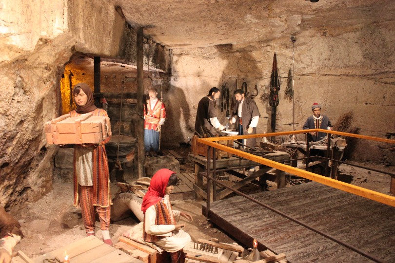 Mağaralara girince karşımıza mekatronik heykeller ile farklı farklı kompozisyonların oluşturulduğu, dönemin anlık yaşam sahneleri çıkmaktadır. Bu sahneler ziyaretçilere hem görsel, hem de duyusal olarak çeşitli duygular yaşatmaktadır. Mağaralarda aynı zamanda milli mücadeleden önceki dönemlerde çeşitli amaçlarla kullanılmış alanlar da canlandırılmıştır. Örneğin sabun imalathanesi bunlardan bir tanesidir.