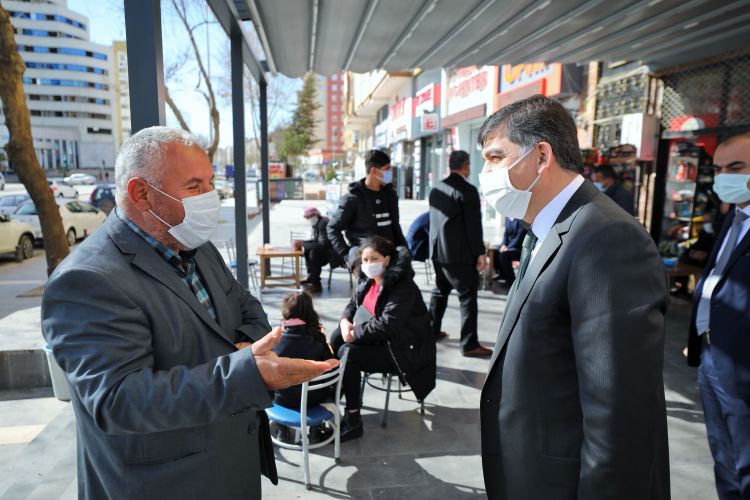 Esnafın taleplerini dinleyen Başkan Rıdvan Fadıloğlu, pandemi kuralları kapsamında maske, temizlik ve sosyal mesafe kurallarına dikkat edilmesi uyarısında bulundu.