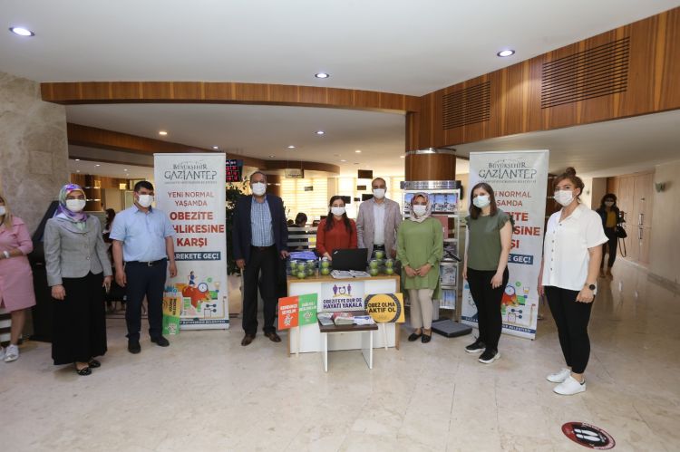 Gaziantep Büyükşehir Belediyesi tarafından Avrupa Obezite Günü dolayısıyla belediyenin ana hizmet binasında kurulan stantta vatandaşların ve personellerin vücut analizleri yapıldı, risk grubunda yer alan kişiler obezite birimine yönlendirildi.