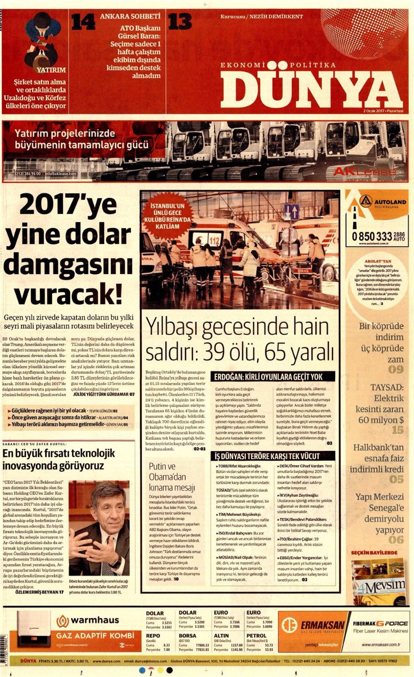 Gazetelerde Bugün | 1 Ocak Pazartesi