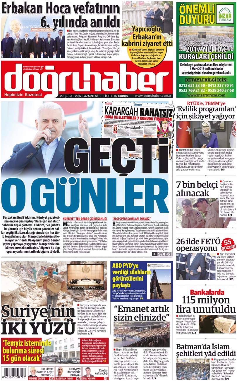 Gazetelerde Bugün | 27 Şubat Pazartesi
