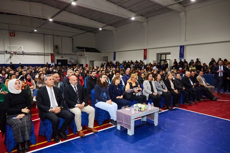 Konuşmasında öğretmenin kent için değerinden bahseden Şahin, şehir için hayatını feda eden şehitlerin okullara isimlerinin verildiğine de değinerek, “Siz bizim memleketimizin yetişmiş insan gücüsünüz. Evlatlarımızı teslim ettiğimiz hazinemizsiniz. Siz bizim en büyük zenginliğimiz, en büyük gücümüz, yarınlarımızsınız. Biz cumhuriyetin 100’üncü yılındayız. Bugün okullarımızın içerisinde şehitlerimizin adını verdiğimiz okullarımız var. Bu şehre hizmet veren, adını yazdıran yüzüncü yılda okullarımız var. Bunların her biri yetişmiş insan gücü, beşeri sermaye.”