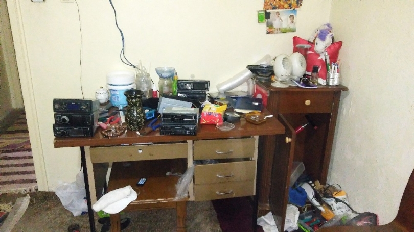 Ekipler, evde yaptıkları aramada ise çalıntı 4 adet motosiklet, 7 adet araç ruhsatı, çok sayıda araç teybi, bahçede bir otomobil ele geçirdi. Çeşitli elektronik ve mekanik malzemelerin de bulunduğu evin atölye olarak kullanıldığı tahmin edilirken, evde hırsızlıkta kullanılan makas, eldiven ve çeşitli kıyafetler de dikkat çekti.