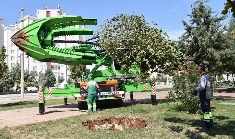 Şahinbey Belediyesi ağaç taşıma makinası alarak ağaçların kesilmeden başka bir alana taşınmasını sağlıyor.