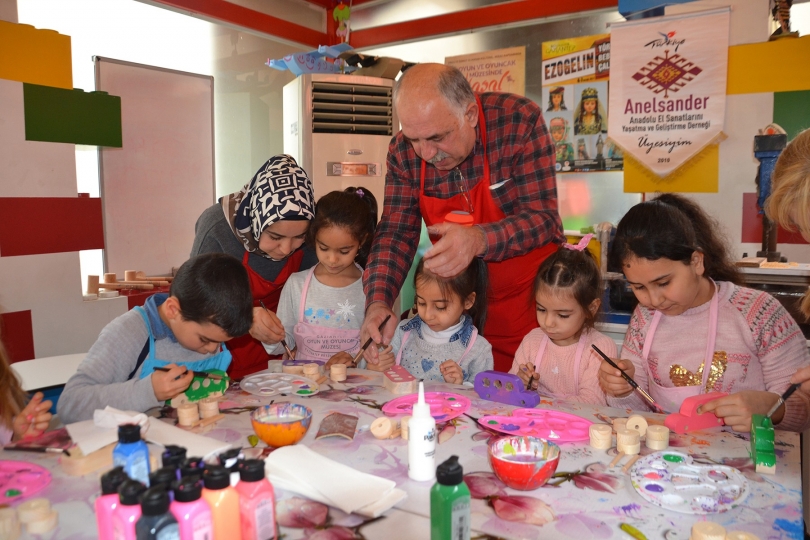 Anadolu El Sanatlarını Yaşatma ve Geliştirme Derneği (ANELSANDER), Kültür Bakanlığı Geleneksel El Sanatları Ustaları ile UNESCO Miras Elçileri üyeleri, Ahşap Oyuncak Atölyesi’nde çocuklara oyuncak dünyasını tanıttı.